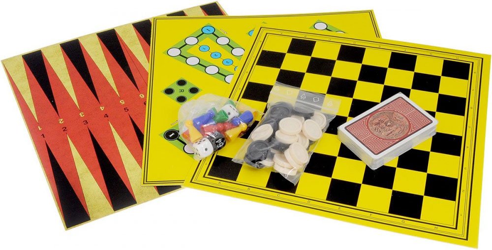 3 двосторонніх ігрових поля (Нарди, Млин, Сходи, Шашки-Шахи)