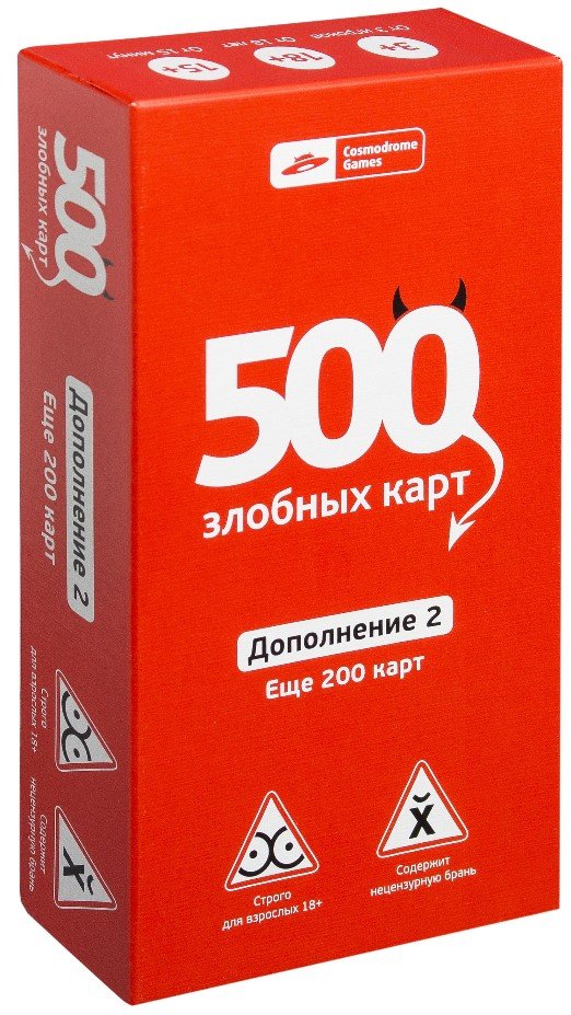 У ньому ви знайдете 40 червоних, як найсильніша гострота, карт з початком фрази та 160 білих, як перший сніг, карт з продовженням. Спробуйте скомбінувати їх так, щоб у Маріванни із сусідньої квартири вуха згорнулися в трубочки, а ваші друзі пустили колу через ніс. І нехай «500 Злобных карт. Дополнение. Набор Чёрный» виявиться саме тим, чого вам не вистачало для нестримних (місцями абсурдних) веселощів. Має вийти навіть в найнуднішій компанії — адже з цією маленькою чорною коробочкою ваші «500 Злобных карт» стануть ще смішнішими. Навряд чи купити нових друзів буде дешевше.
