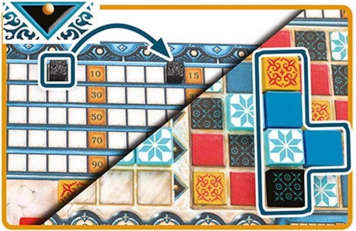 По-друге, в коробці на вас чекає 100 чудових плиток з різноманітними орнаментами, які стануть основою ігрової механіки «Azul». І неспроста вони нагадують мавританську архітектуру і португальські палаци. Адже саме про поширений там старовинний спосіб облицювання стін піде мова в цій грі Міхаеля Кислінга.