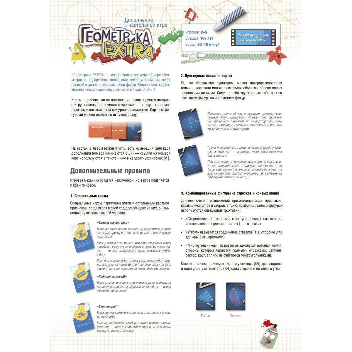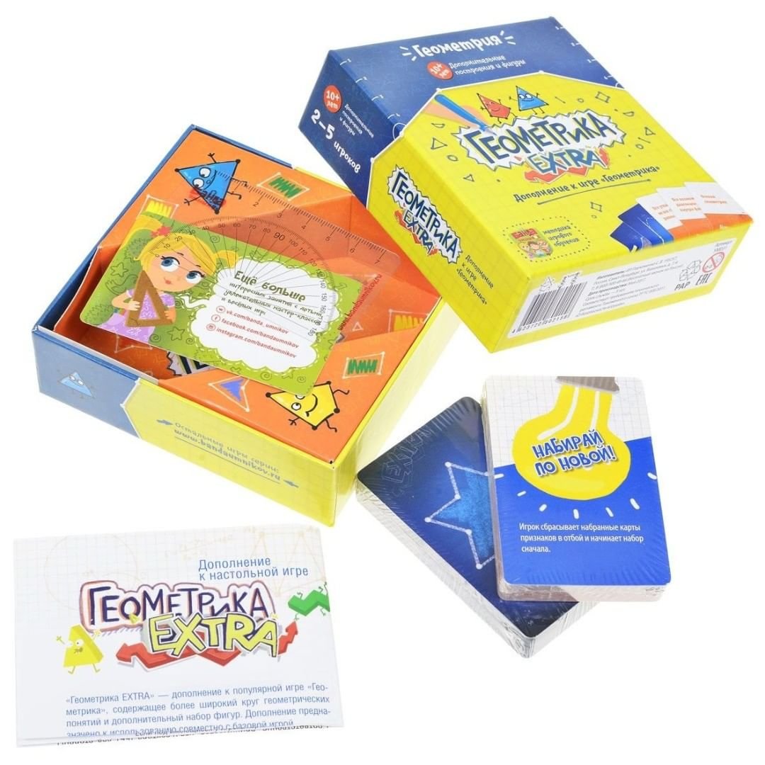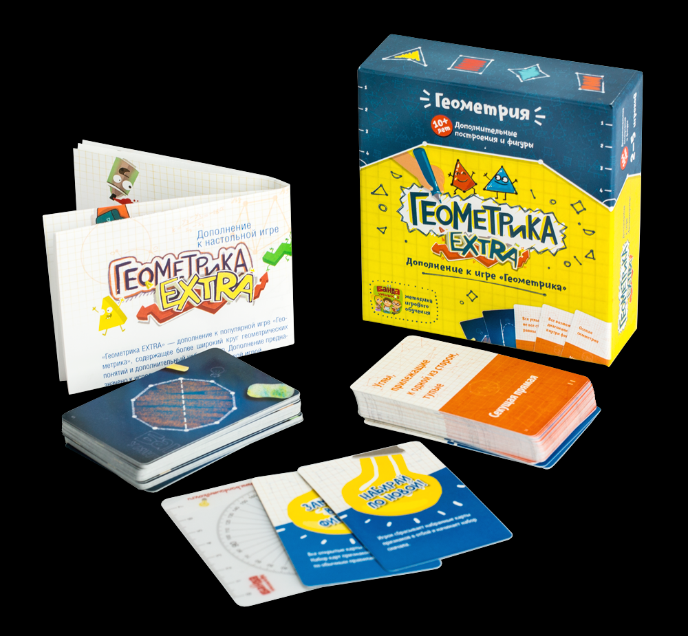 Довідайтеся більше про доповненні Геометричний Extra в описі гри Банда Розумників: Геометричний Комплект 2 в 1. Можна купити розширення Геометричний Extra до базової версії гри Геометричний, якщо вашій дитині здійснилося 10 років і відповідно за умови, що у вас уже є базова версія. Виробник Банда Розумників розробив гру Геометричний Extra таким чином, що за допомогою доповнення правила ускладнюються й навчання набирає новий виток!