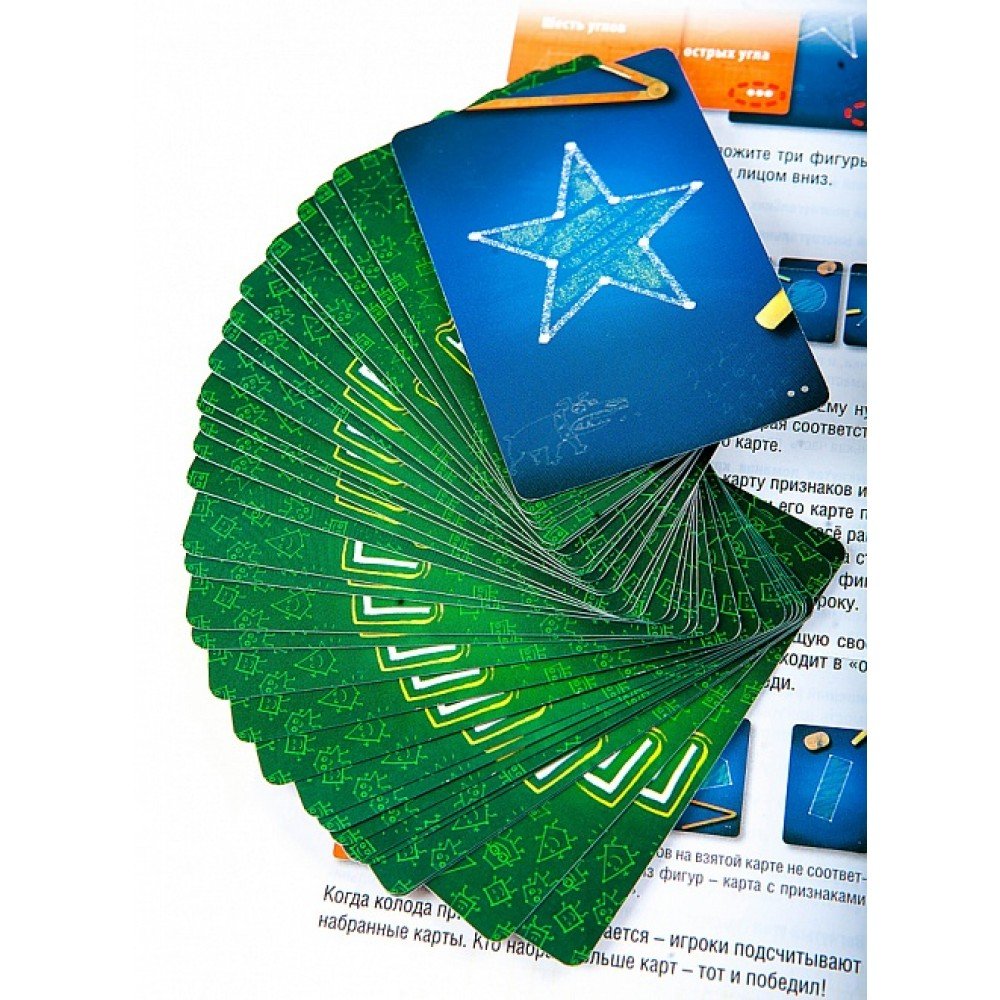 Навчитися розрізняти фігури, визначати тип кутів, дізнатися, чи є у лінії периметр, що таке осьова симетрія - ці та інші корисні знання легко засвояться навіть самими вродженими гуманітаріями, якщо у вашій родині є гра «Геометричний. Комплект 2 в 1 ». Причому це видання крім базової «Геометричний» включає в себе також доповнення «Геометричний Extra» для дітей старшого віку. Як же ми будемо гризти граніт науки? Як найсмачніший льодяник - з ентузіазмом і задоволенням. Потрібно викласти з колоди з зображеннями фігур перші 5 карт на стіл і по черзі витягати карти з колоди з ознаками.