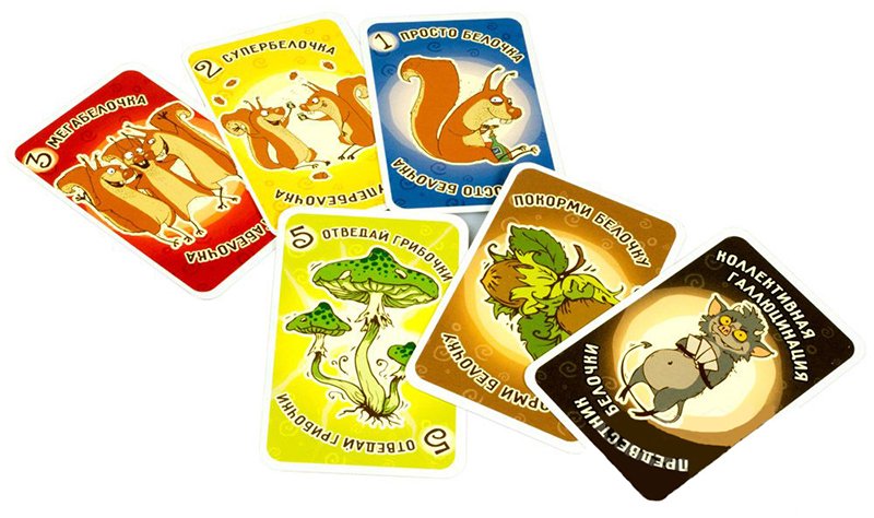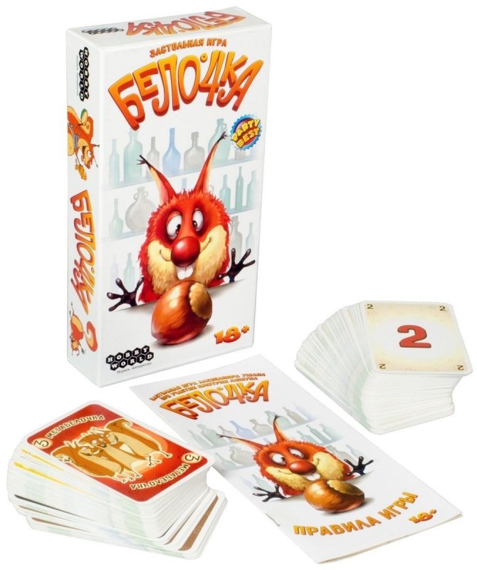 Немає приводу, щоб зібратися за столом в душевній компанії? Візьміть з собою компактну коробку з застільної грою «БеЛо4к» і вечір пролетить непомітно, але дуже весело! Досить відкрити колоду карт «Білочка» з кумедними ілюстраціями (грибочки, колективні галюцинації і пухнасті білки викличуть посмішку у кого-завгодно), роздати гравцям в кількості від 3 до 9 осіб по 8 штук, а решта покласти в загальну стопку. Завдання учасників - скинути з руки всі карти, орієнтуючись на деякі правила, або спритно їх порушуючи. Наприклад, карту з номером можна розіграти або на карту будь-якого номіналу аналогічного кольору, або покрити меншу. А якщо вам пощастить добрати з колоди чортика, то поклавши його на будь-яку карту, ви змусите всіх інших гравців взяти штрафні. Правила прості, а процес дуже захоплюючий, і з наростанням градуси веселощів, все складніше орієнтуватися в ситуації. Характер гри і вікове обмеження 18+ натякає на присутність алкоголю, але його відсутність не повинно вас зупиняти від гри в «БеЛо4к», адже ця руда пустунка підніме настрій кому завгодно!