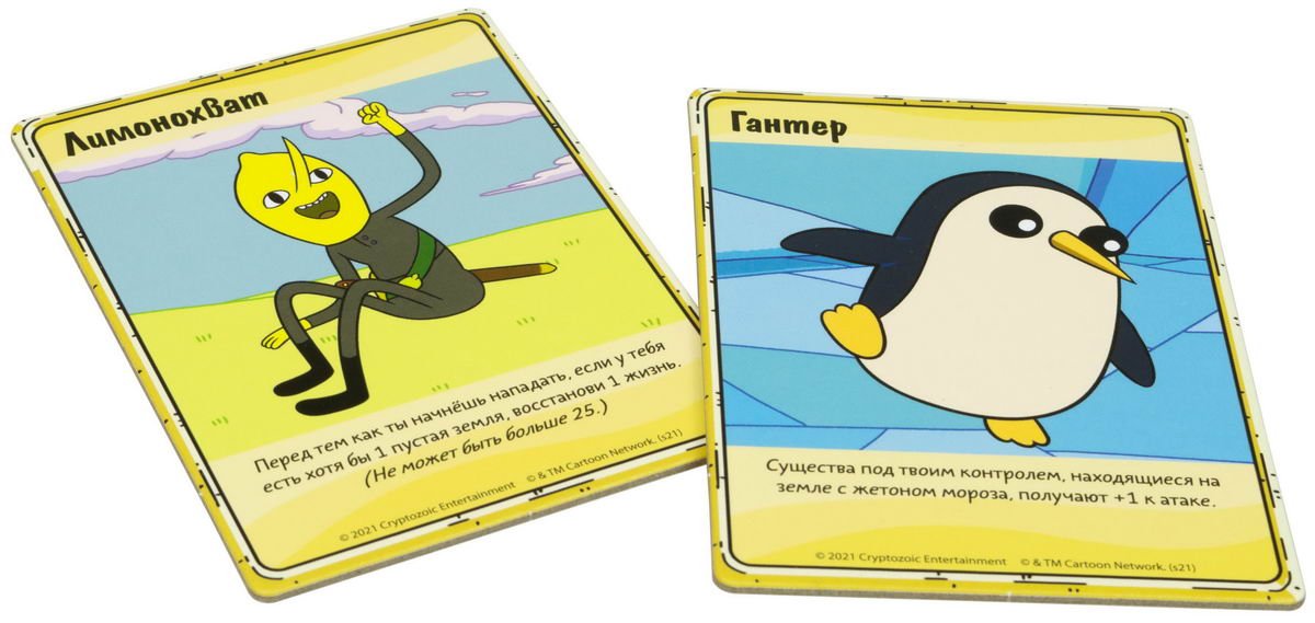 Ця новинка 2021 року порадує всіх шанувальників мультсеріалу колодами графа Лимонохвата і пінгвіна Гантера, а значить, абсолютно новими діями, істотами та ефектами для кожного гравця. У лимонного спадкоємця Цукерного Королівства, наприклад, з'явиться можливість сіяти паніку і плутанину в рядах ворога, а слуга Снігового Короля зможе заморожувати території супротивника. Так що у вас буде задосить способів нашкодити конкуренту та безліч варіантів, на що витратити 2 очка дії у свій хід. А якщо ви змішаєте «Время приключений. Карточные войны: Лимонохват против Гантера (Час пригод. Карткові війни: Лимонохват проти Гантера)» з іншими випусками серії, то вийде ще цікавіше!