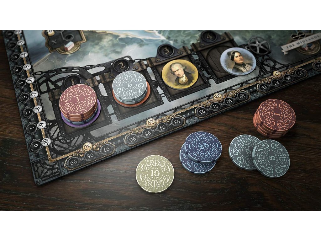 Цей чудовий набір з 100 пластикових фішок люксової якості прекрасно замінить картонні монети та дозволить гравцям дійсно відчути себе впливовими промисловими магнатами. Brass. Iron clays номіналом 1, 5, 10, 20 і 100 навіть підходять для гри в покер та інші настільні ігри, але особливо прикрасять ваші партії в Brass: Бірмінгем (Брас. Бирмингем УКР). Розпоряджаючись такими фішками в елегантній коробці, ви не просто відчуєте себе аристократами тих часів, але ймовірно, навіть захочете одягнути фраки та циліндри. А прекрасні відчуття від гри не будуть затьмарені пошарпаними монетами, адже пластикові фішки грошей прослужать вам практично вічність. Цей делюкс-аксесуар також можна купити в подарунок щасливому власнику однієї з кращих ігор сучасності та зробити партії в Brass: Бірмінгем ще більш естетичними та атмосферними!
