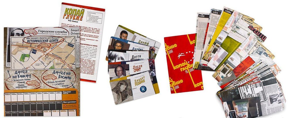 Тим більше що ця стильна коробка відкриває завісу над таємничим політичним вбивством 1977-го року, де вам потрібно на повну використати свої дедуктивні здібності, щоб знайти вбивцю за чотири доби. Відправляйтеся в Бостон (самостійно або з командою до 5 осіб), знайомтеся з 5 новими персонажами та заглиблюйтеся в колоду з 35 карт зачіпок. Але з доповненням «Детектив. Копай глибше (Копай глубже)» гравцям доведеться забути про допомогу Гуглу (на дворі 70-ті)!
