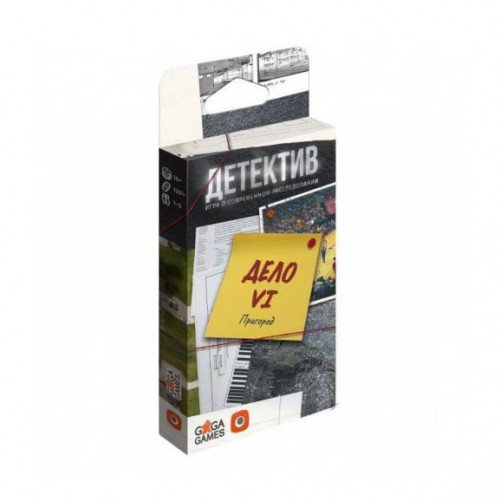 У коробці на вас чекає 20 карт з доказами та зачіпками щодо події, а все інше — ви знаєте. Хоча якщо ви ніколи не грали в кооператив «Детектив. Игра о современном расследовании», то можете купити доповнення «Детектив. Дело No6. Пригород (Справа No6. Передмістя)» відразу з базовою грою і, наприклад, почати з нього для розігріву. Спочатку цей сценарій не був доступний у продажу, а додавався тільки до попереднього замовлення і як промо до гри. Але тепер його можна замовити в нашому магазині настільних ігор і зіграти в будь-який момент (навіть з новачками, адже він не пов'язаний з кампанією сюжетно). Сценарій «Детектив: Дело 6. Пригород» — це захопливий спосіб довести, чи дійсно ви гідні працювати в Національному агентстві розслідувань.