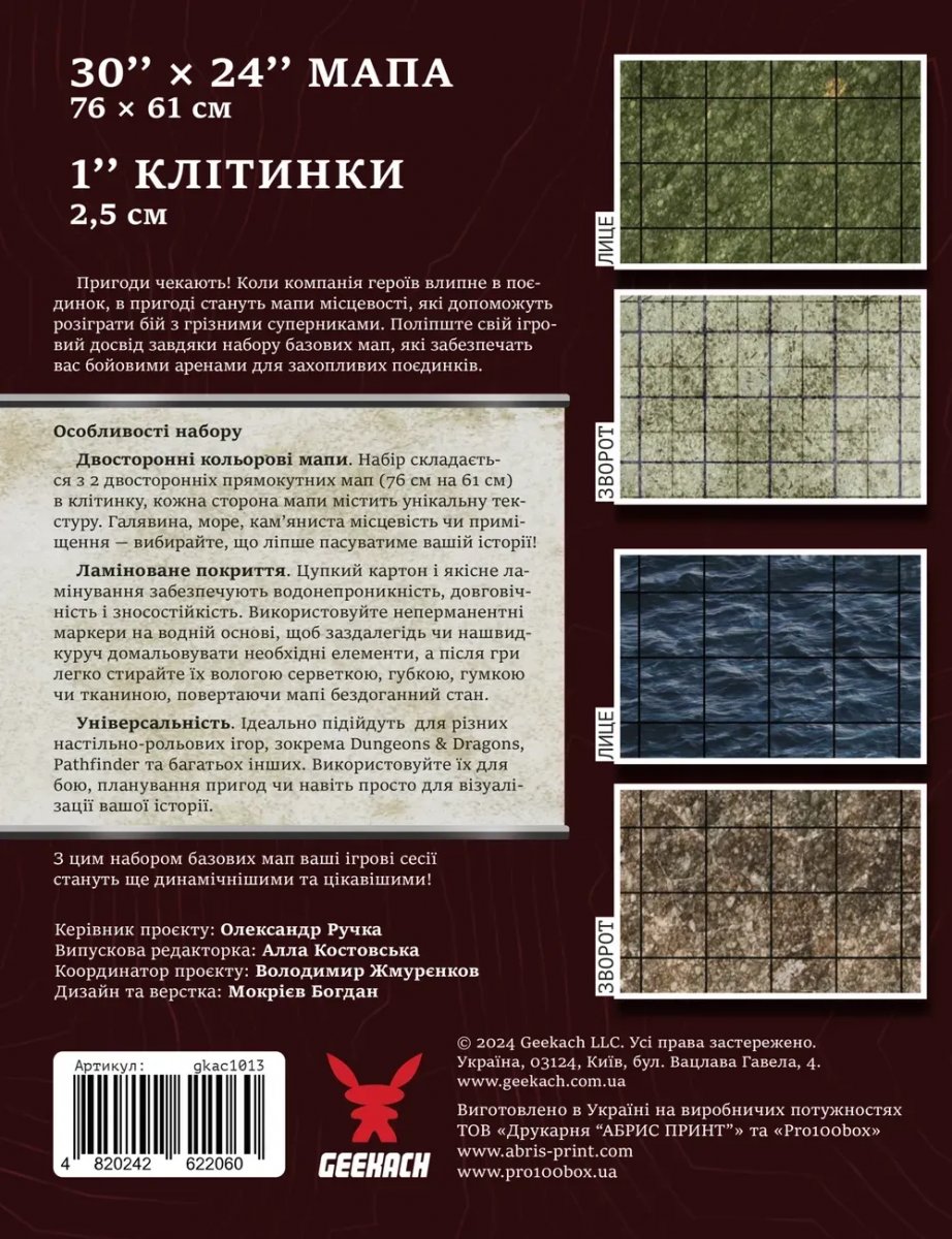 Матеріал – картон із щільністю 300 мг/м2.Розмір 76 на 61 см (30 на 24 дюймів).