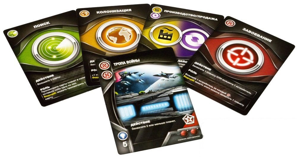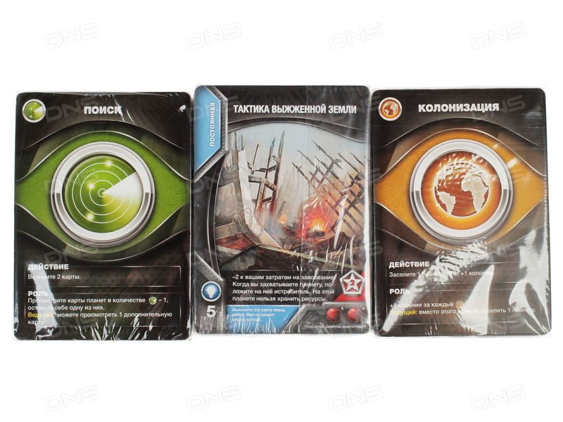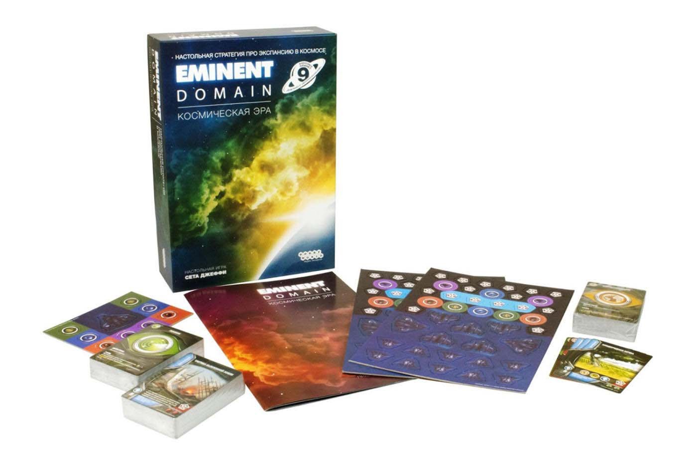Спеціально для тих, хто глибоко в душі мріє правити світом (а також для всіх любителів чудових колодостроітельних стратегій), є коробочка здатна доставити масу задоволення без загрози світовій економіці. Зустрічайте довгоочікувану локалізацію номінанта 2012 року на звання кращої карткової і сімейної настільної гри - «Eminent Domain: Космічна Ера»! Що в ній такого хорошого? Практично все. Починаючи від простих правил з зрозумілим геймплеєм - закінчуючи в 2 рази більше вигідною ціною російськомовної версії в порівнянні з оригіналом. А ще уявіть собі всю романтику захоплення безкрайнього космосу і безмежне безліч варіантів розвитку власної імперії, і ваші руки самі потягнуться до колоді. У коробці з настільною грою «Eminent Domain: Космічна Ера» ви знайдете 186 прекрасно ілюстрованих карток: планет (які належить захопити), ролей (показують напрямок дії) і технологій (спеціальних ефектів). Додайте до цього 90 різноманітних жетонів, в тому числі військових винищувачів, і вас накриє фантастичною атмосферою. Розвідка галактичних просторів, мирна колонізація і завоювання планет, виробництво ресурсів і торгівля, наукові дослідження та інвестиції в технології - все це чекає вас на шляху до космічного панування і боротьбі за очки впливу. Гравці в свій хід вибирають одну з 6 запропонованих ролей, застосовують її і передають право наступного гравця діяти в цьому ж напрямку або пасувати. Чим більше ви вдосконалюєтеся в одній з областей - тим більше карт цього напрямку стає доступно, а значить, ваші поточні дії безпосередньо впливають на результати. Тому не варто сильно відволікатися на блиск зірок і чорні діри, використовуйте свій геній стратегії і здоровий розрахунок, і хто знає, кому підкориться Всесвіт в цей раз. Але те, що в «Eminent Domain: Космічна Ера» захочеться грати знову і знову, сумнівів не викликає!