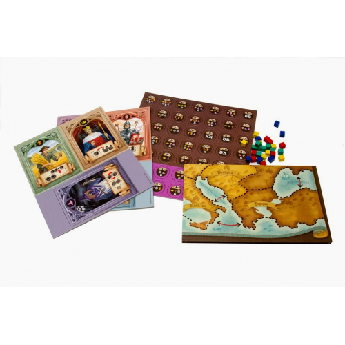 - 1 ігрове поле, на якому зображено карту Європи XIV століття- 80 дерев'яних кубиків (по 20 кубиків кожного з 4-х кольорів)