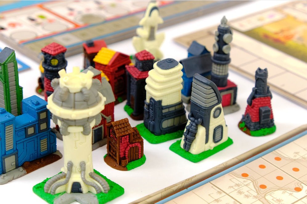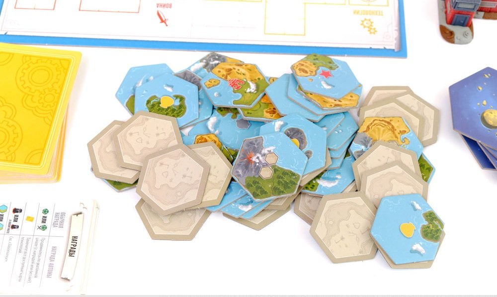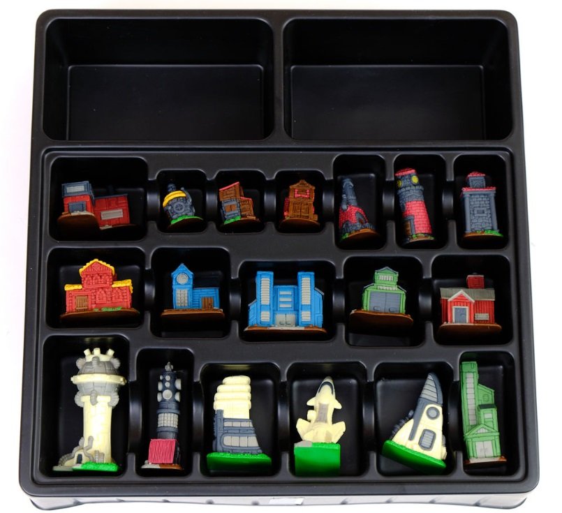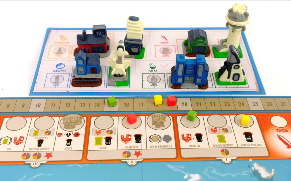 Але що ще вражає в настільній грі «Епохи (Эпохи)» — це оформлення. Ми обіцяли собі не судити лише по обкладинці, тому говоримо про оформлення в другу чергу, але ви тільки подивіться на цю красу! Уже розфарбовані унікальні мініатюри будівель, кастомні фішки ресурсів, високодеталізовані крихітні будівлі та розсип інших компонентів з яскравими ілюстраціями (і в зручному пластиковому органайзері) захоплюють дух, викликаючи радісне передчуття. І не дарма. Адже вам належить провести свій цивілізацію з первісних часів до вершин еволюції, створивши непереможний і унікальний народ! А ця грандіозна мета вимагає особливого антуражу.