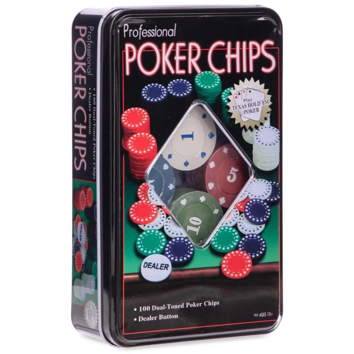 Фішки для покеру 100 фішок з номіналом у металевій коробці (Poker Chips)