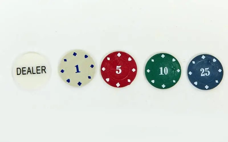 100 фішок з номіналом 1, 5, 10, 25Фишка дилера