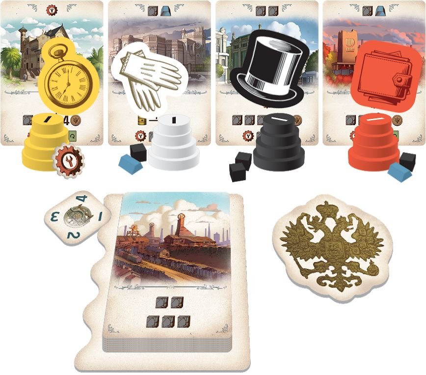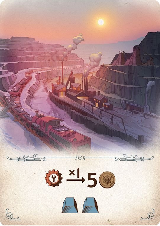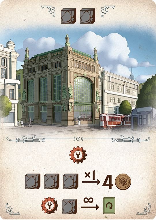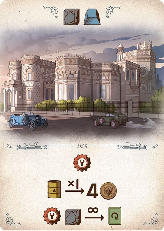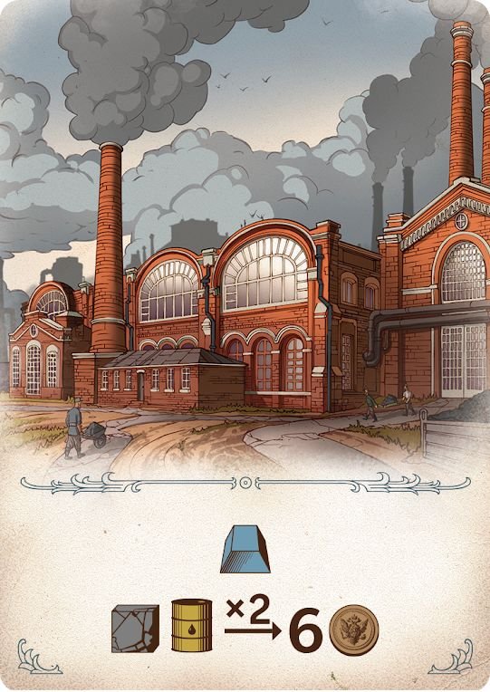 У кожного гравця буде 4 жетони різного номіналу, за допомогою яких їм потрібно по черзі робити ставки на загальному ринку. Звичайно, це додає гостроти в ігровий процес, адже вашу ставку можуть перебити, а бажані карти — схопити хтось інший. Але навіть це може стати стратегією: поки більша ставка забирає собі будівлю, менша ставка отримує компенсацію ресурсами (індивідуальну для кожної карти), яка дуже стане в пригоді в наступній фазі гри. Адже отримавши на аукціоні підприємства, ви зможете викласти їх в певному порядку, і, по черзі розігруючи ефекти карт, а також використовуючи отримані ресурси, ви будете збільшувати свій капітал.