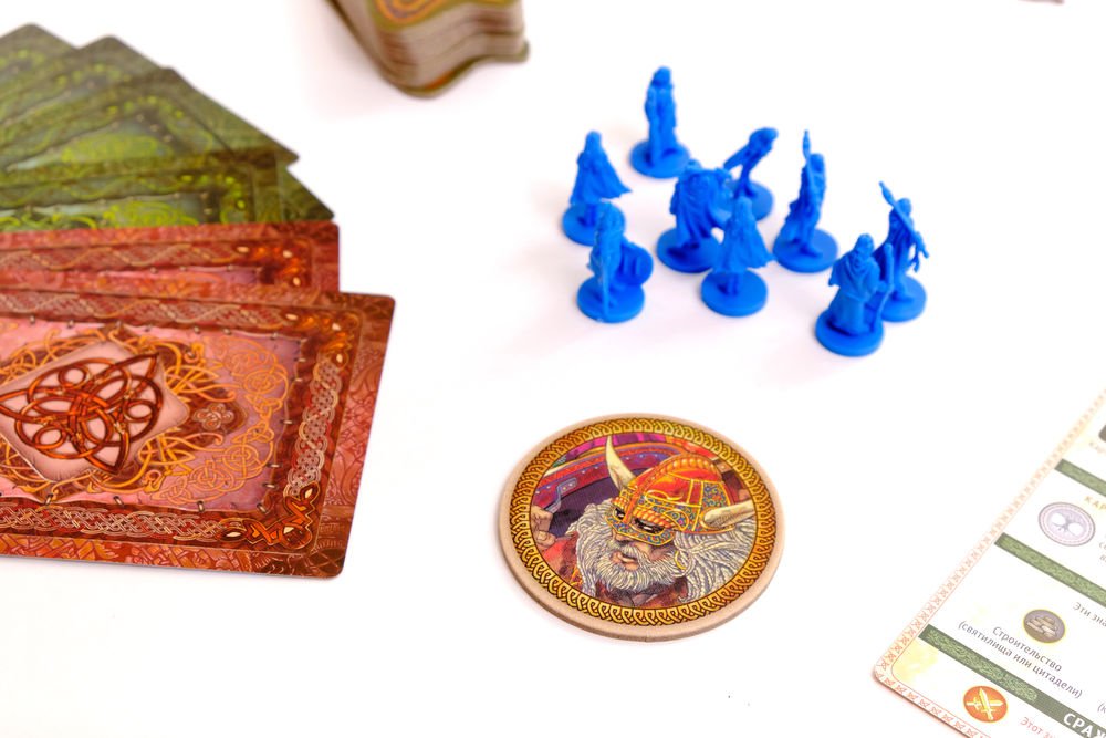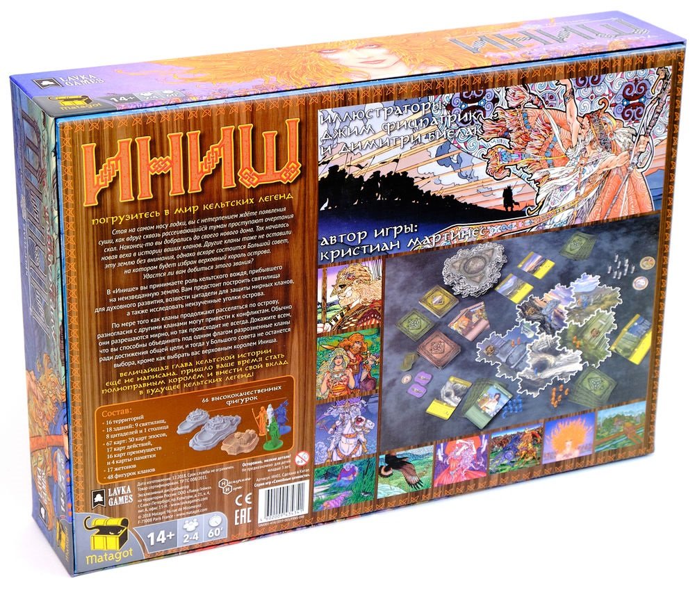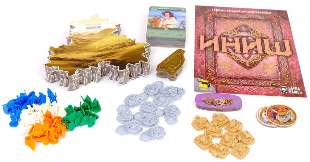 Коли знавці настільних ігор говорять, що новинка 2016 роки від Крістіана Мартінеса по-справжньому геніальна, ти зацікавлений прислухаєшся до розмови. Коли захоплюються внеском Джима Фіцпатріка в оформлення цієї настільної гри, які зробили «Inis» шедевром настільного геймдізайн, ти присувається ближче. Коли ж нарешті з'являється її російськомовна локалізація, ти просто не можеш залишатися осторонь. Відкрити для себе «Ініш» - це як по-справжньому закохатися. Спочатку - не встояв перед красою, потім - пізнавши душу. Ця стратегія на контроль територій розповість про відкриття древніми кельтами нової землі, де кожен вождь прагне довести, що саме він гідний носити титул верховного короля. Спершу варто відкрити коробку і пережити перші щире захоплення компонентами гри. Значні тайли територій незвичайної форми з атмосферними ілюстраціями Дімітрі Біелака (художника живий карткової гри «Гра престолів»), 64 високодеталізовані мініатюри кланів і будов, великі жетони і 47 карт з зачаровують картинами Джима Фіцпатріка. До речі, він, ірландець до вподоби і походженням, все життя ілюструє кельтську міфологію, а нам відомий завдяки знаменитому червоно-чорному зображенню Че Гевари. І весь цей естетичний ураган забирає гравців прямо в чарівний світ ірландського епосу. І після того, як компоненти викладені на столі, а правила удостоюються побіжного огляду, в свої дбайливі руки приймає нас Крістіан Мартінес - автор «Ініш». Він працював над грою, відточуючи і вдосконалюючи правила і механіки, понад 8 років. Хоча б цей факт вже передбачає щось більше, що переховується за лаконічністю правил і елегантністю ігрового процесу. Серцем ігрової механіки «Ініш» виступають карти - ніяких зайвих жетонів, ресурсів і елементів. Унікальна система драфта (шкода, що її ніхто не придумав раніше) в першій фазі Зборів дозволяє змінювати свої рішення в залежності від вибору суперників, адаптую свою стратегію до поточної ситуації. Будь-які дії на наступному етапі (у фазі Сезону) відбуваються за допомогою обраних карт: відкриття нових земель, пересування воїнів, розміщення нового клану, будівництво святилищ і цитаделей (для захисту в бою), атака, битви, навіть цінні переваги при контролі територій описані в картах. Завдання - отримати і донести до наступного Зборів якомога більшу кількість жетонів Претендента. Їх удостоюється гравець за три види заслуг: завоювання кланом 6 і більше земель, статус вождя на 6 і більше територіях (визначається за чисельним перевазі кланів гравця на тайлі) і перевага в релігії (присутність поруч з 6 і більше святилищами). На шляху до мети знайдеться місце для дипломатії і вивертів, здорової конкуренції та агресивних битв, продуманого розвитку і несподіваних поворотів. Пам'ятай, що в тактичній грі «Ініш (Inis)» твоє лідерство хитко, а статус вождя - непостійний. Справжній король завжди готовий довести своє право на трон. Відкрий для себе зовнішню і внутрішню красу ігрового процесу, напиши нову захоплюючу главу кельтської міфології!