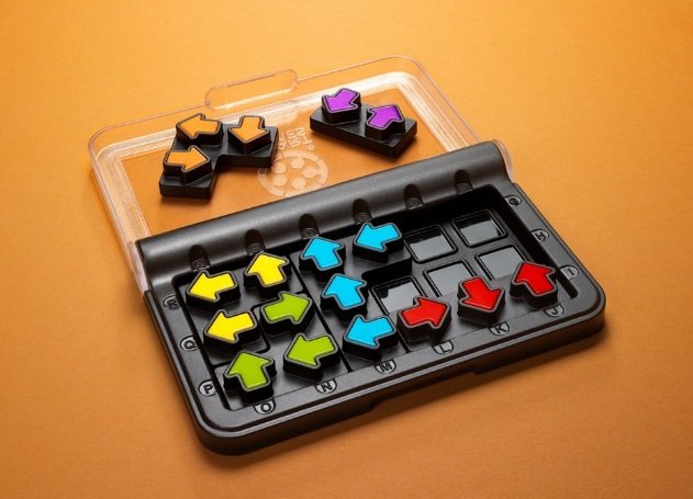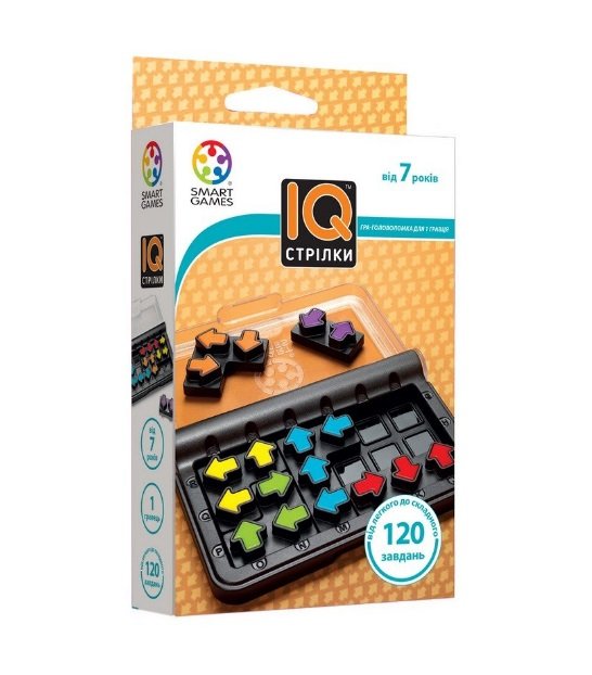 Новинка від компанії Smart Games, дорожня головоломка «IQ Стрілки», стане дуже цікавим супутником у подорожі та корисною розвагою вдома! Адже ця компактна логічна гра складається з невеликого боксу з прозорою кришкою і комплекту з 6 елементів різної форми з кольоровими стрілками, а також буклету з 120 завданнями (і відповідями).
