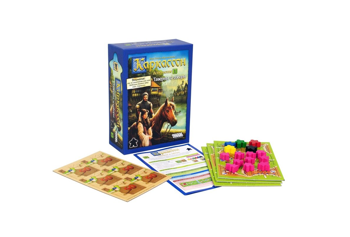 Що робити, якщо у вас є базова версія «Каркассон», і ви не хотіли б купувати велику коробку з грою «Каркассон. Королівський подарунок», але хотіли б розширити можливості улюбленої стратегії та запросити за стіл ще одного (6-го) гравця? В цьому випадку Хід Конем радить купити окремий додаток «Каркасон. Таверни та собори (Carcassonne: Inns and Cathedrals) ». Це перше велике доповнення, яке не тільки додає ризику і вводить в гру іншу систему підрахунку очок, але і дозволяє грати в Каркасон вшістьох. У коробці з цим розширенням ви знайдете набір дерев'яних міплів для ще одного гравця (який можна використовувати незалежно від доповнення) і 18 нових тайлів. Собори можуть стати частиною вашого міста і принести 3 очка за кожну тайл замість одного, а таверни біля озер подвоять очки за добудовані дороги. Прекрасно, чи не так? Але майте на увазі, якщо ці частини ландшафту виявляться недобудованими, то гравець залишиться без очок. Крім того, додаток «Каркасон. Таверни та собори» включає 6 великих міплів, які рахуються за двох підданих. Так, ці старші брати в останній момент можуть здорово змінити кількість отриманих очок і зробити вас переможцем! Не дарма фанати гри вважають це доповнення одним з кращих в серії!