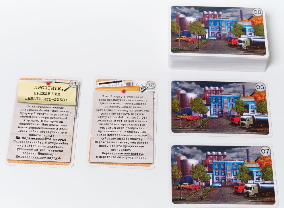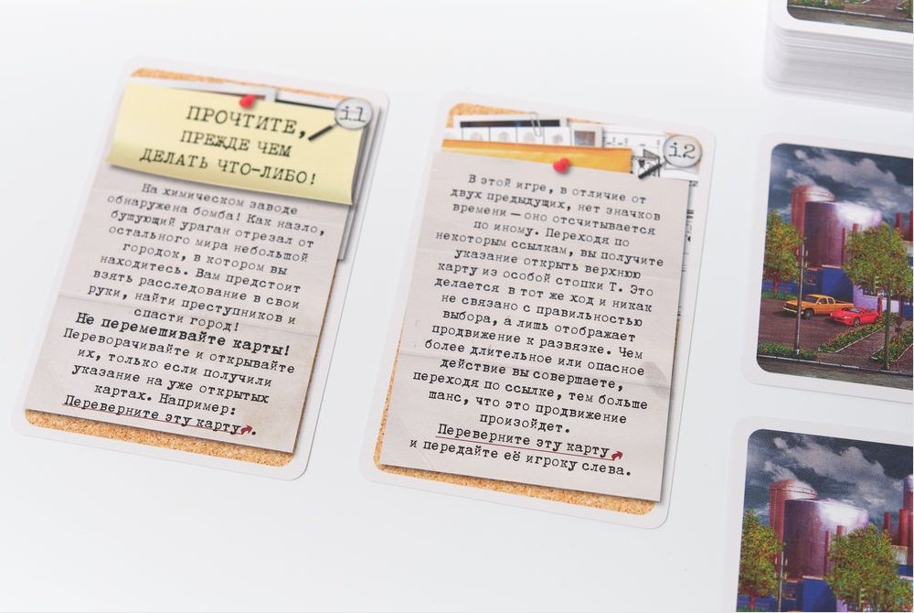 В цьому продовженні гри 1-6 учасникам потрібно розплутати справу No3 під назвою «Час закінчується». І на вас чекає не просто пошук вбивці, а справжнє завдання з порятунку цілого міста. Вам необхідно знайти спосіб, як знешкодити бомбу на хімічному заводі, використовуючи свої логічні та дедуктивні здібності. Відкрийте коробку «Карманный детектив 3. Время на исходе», дістаньте колоду з 71 карти та, не перемішуючи їх, дотримуйтесь вказівок. Вам потрібно приймати непрості рішення, тримати в голові безліч припущень і доказів і знаходити правильні відповіді за обмежений час. І не затягуйте з проходженням — ви ж не хочете, щоб все злетіло в повітря?
