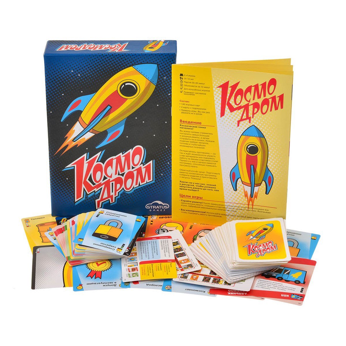 Космічні кораблі не борознять простори Всесвіту, немає - вони лежать розібрані в коробці з захоплюючою настільною грою «Космодром» і чекають ваших команд. Створіть з купи карткового металу кращі міжгалактичні космоліт і відправте їх назустріч зіркам! Завдання гравців в багаторівневої картковій грі для компанії «Космодром» - отримати якомога більше переможних очок, зібравши ракети з нуля і помістивши їх на злітну площадку. В ході гри перед кожним ракетобудівником будуть формуватися три рівня (червоний, жовтий і зелений) з відповідних карт. Все починається в складальному цеху, куди гравець викладає карту ракети певного типу і необхідні ресурси (метал і паливо). Не забувайте про картах висококваліфікованих працівників: вам знадобляться інженери або майстра на всі руки, а на наступних етапах - перевіряючі, співробітники центру польотів і, звичайно, космонавти. Після будівництва зореліт вирушає вище - на випробування, і якщо все проходить успішно, то може піднятися на стартовий майданчик (яка також збирається протягом партії). Що ж може піти не так, запитаєте ви? Та що завгодно! У колоді попадається щедра жменю родзинок: різноманітні карти капостей, які можна підкинути конкурентам (від промислового шпигунства і хедхантинга фахівців до відвертої диверсії на космодромі), а також карти переваг і поліпшень, які допомагають в грі і дають бонуси в кінці. Забезпечили космічних туристів балоном кисню і підготували ракети до зльоту? Підраховуйте окуляри і з'ясовуйте, хто переміг в цій захоплюючій космічній гонці! Зал слави «Космодрому» чекає своїх героїв!