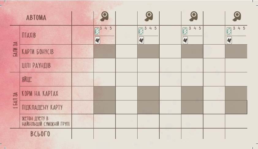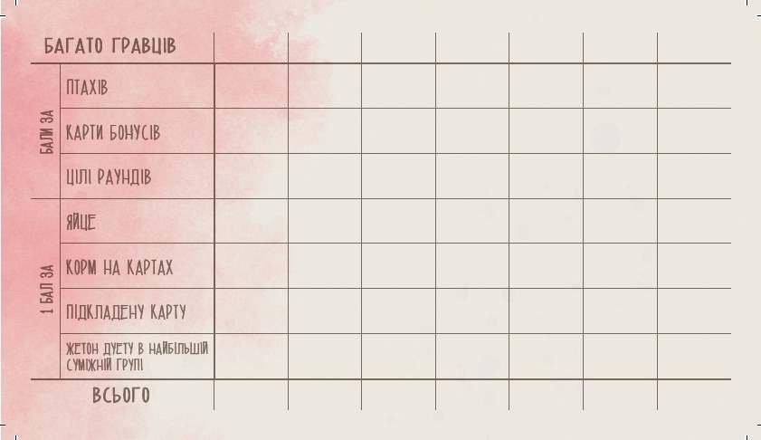 90 карт птахів14 карт бонусів (3 продубльовано з базової гри з оновленими списками)