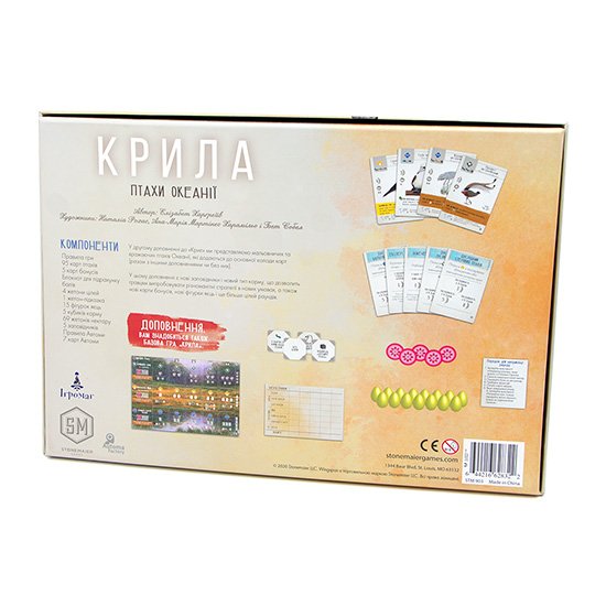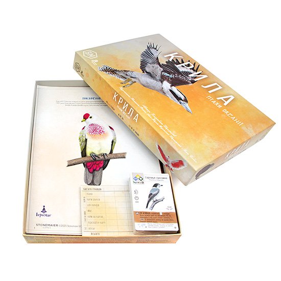 Ця новинка 2021 року стане прекрасним доповненням до української версії настільної гри «Крила (Wingspan)» і подарує вашій улюбленій орнітологічній настолці безліч нововведень. По- перше, у великій коробці на вас чекають нові планшети гравців з абсолютно новими функціями, які можна використовувати в базовій грі навіть без доповнення. По-друге, в доступі з'являється новий ресурс — нектар, який працює трохи не так, як інші ресурси, але впливає на підсумковий підрахунок очок. По-третє, гравців чекає колода з 95 унікальних птахів Океанії, серед яких з'явилися нелітаючі (тобто без розмаху крил), які живляться нектаром і карти з новими жовтими властивостями. Причому колода як і раніше радує приголомшливими ілюстраціями пернатих і дивує новими цікавими фактами про птахів.