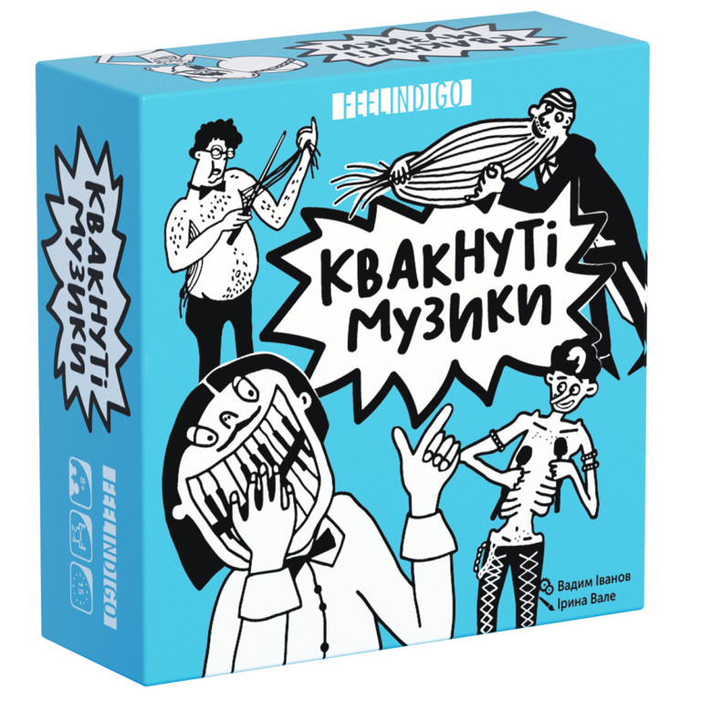 Як створюється жаб'яча симфонія? У цій легкій і веселій карткові грі ти змагаєшся за найкращих музикантів для свого жаб'ячого оркестру. Твоя мета — зібрати різних жаб з унікальними музичними здібностями та створити найкращі комбінації для максимальної кількості очків. Але будь обережним — інші гравці теж полюють за талановитими амфібіями! У грі ти будеш використовувати хитрі тактики, щоб перетягнути кращих музикантів на свій бік, не дати суперникам збільшити їхні оркестри і при цьому сформувати найгармонійніші комбінації у своєму ансамблі. Партія "Квакнутих Музик" триває близько 20-30 хвилин і розрахована на 2-5 гравців.