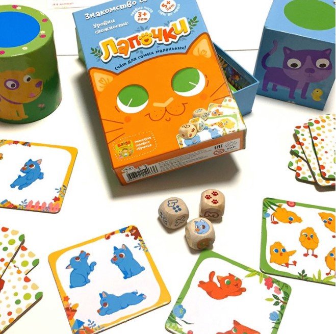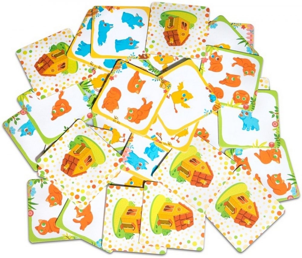 Малюк вміє рахувати тільки до трьох або поки зовсім не вміє? Відберіть з 30 карток з пташками, кошенятами і собачками ті, на яких граються до трьох тварин. Поступово можна додати картки для рахунку до 5-ти в будь-якому з варіантів гри. У режимі «Я в будиночку» учасникам треба буде кидати спеціальні кубики і відправляти додому картки з випали тваринами або спільно, або змагаючись на швидкість реакції. «Пухнасті хованки» пропонують розкласти картки сорочками вгору і розкривати по дві, намагаючись запам'ятати і знайти більше однакових пар. А «Зверолото» тренує уважність, яка знадобиться, щоб накрити своїх тварин картками-близнюками швидше суперників.