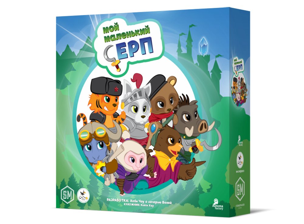 «Мій маленький серп» дуже схожий на дорослі ігри, але цікавіший та зрозуміліший дітям. Його можна купити навіть дошкільнику, щоб потренувати його логічне мислення, вміння планувати свої дії та просто здорово провести час разом. Причому в коробці з грою ви знайдете 14 приголомшливих фігурок персонажів, які можна розфарбувати разом з дітьми (керівництво по розмальовці додається), а також розсип маленьких яблучок і блакитних кристалів. Та й всі інші компоненти гри (а їх досить багато) викликають бажання не випускати їх із рук. А тут ще додайте захопливий ігровий процес, який сподобається як дітям, так і дорослим — і «Мой маленький серп» стане родзинкою ваших домашніх ігротек надовго!