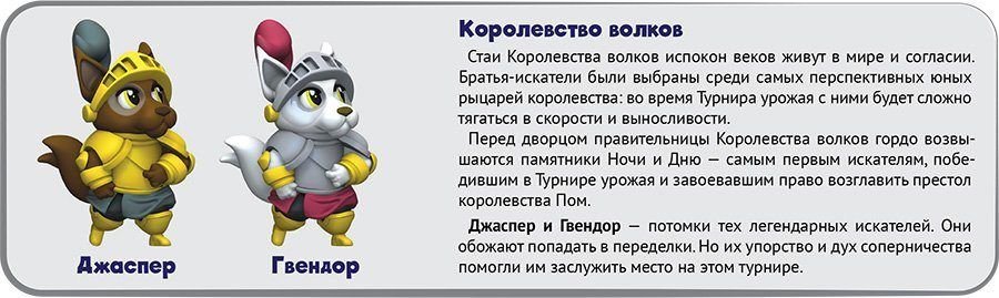 Ця сімейна стратегія, створена Хобі Чоу і його маленькою донькою Вэною, гармонійно поєднала в собі механіку класичного «Серпа» і атмосферу мультсеріалу «Мій маленький поні». Чи можливо таке? Цілком! Але Хід Конем радить переконатися в цьому особисто, бажано всією сім'єю. А вся річ у тому, що в Королівстві Пом проходить щорічний турнір по призначенню наступного правителя, і кожен гравець вибере двох представників свого звіриного королівства, щоб позмагатися.
