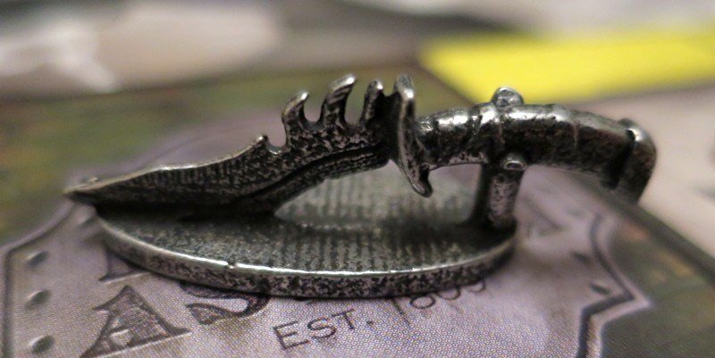 • 6 власних жетонів: Некрономікон, Скрижаль культиста, Статуетка Ктулху, Сяючий трапецоедр, Амулет гончих собак і Кинджал Дагона