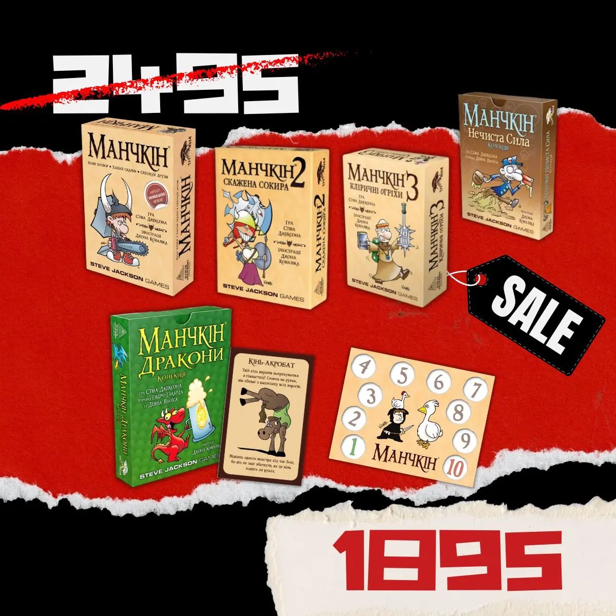 Це набір, після якого ви офіційно оголошуєтесь манчкіноманами. База, допи, дракони, нечиста сила, промки й навіть лічильник рівнів – усе, щоб ваш стіл перетворився на епічне фентезі-побоїще з підколами, зрадками й криками «СТІЙ, ТИ НЕ ТАК ЧИТАЄШ КАРТУ!» 😈