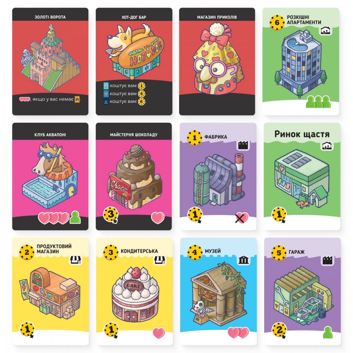 "Місто Щастя" — це захоплива настільна гра про планування та розбудову ідеального міста! Тут ти стаєш мером, архітектором і менеджером одночасно, спрямовуючи розвиток свого поселення, щоб створити найщасливіше місто у всьому світі гри. Кожне рішення впливає на баланс між економікою, екологією, комфортом та культурою!