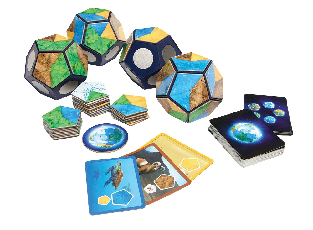 Хто з нас у дитинстві не мріяв створити власну планету з усіма її дивовижними ландшафтами та населити її неймовірними істотами? Настільна гра "Планета" дарує вам саме таку можливість - стати творцем власного крихітного Всесвіту! В основі гри лежить захопливий процес побудови тривимірних планет, кожна з яких включатиме різноманітні біоми - від глибоких океанів до крижаних вершин гір. Граючи, ви зможете розвивати та вдосконалювати свій творчий потенціал, приймаючи стратегічні рішення щодо найкращого розташування материків, морів і льодовиків. Але це ще не все! Ваша основна мета - створити ідеальні умови для життя диких тварин, зображених на картках. Кожен гравець отримує секретні цілі, приховані від інших, і має розміщувати континенти та населяти свою планету істотами так, щоб максимально задовольнити їхні унікальні потреби. До складу гри входять: - Дванадцятигранні ядра планет, що стануть основою для вашого світу. - Різноманітні плитки континентів, що зображують океани, льодовики, гори, ліси та пустелі. - Картки диких тварин, які необхідно розмістити на планетах. - Секретні карти з індивідуальними цілями для кожного гравця. Ігровий процес: Гра складається з 12 динамічних раундів, кожен із яких поділяється на дві захопливі фази. Спочатку гравці по черзі обирають і розміщують магнітні плитки континентів на своїх планетах, формуючи ландшафт майбутнього дому для диких створінь. А потім настає час для найцікавішого - розвитку живої природи! Від третього раунду й далі гравці починають накопичувати карти різноманітних тварин, виконуючи умови на кшталт "найбільша кількість певного типу регіону" чи "найбільший зв'язаний регіон відповідного виду". Чим більше тварин оселиться на твоїй планеті, тим більше очок ти отримаєш наприкінці гри! Після 12-ти напружених раундів гра підійде до кінця. Тепер гравці підрахують набрані бали - по 1 очку за кожну тварину, середовище проживання якої відповідає природним умовам на їхніх планетах, та по 2 очки за створіння, яким довелося адаптуватися до незвичних для них умов. Перемогу святкуватиме той, хто зумів збалансувати і збагатити свою планету найкраще! Занурся у світ "Планети" та створи свій унікальний космічний рай! Зможеш ти зрівноважити природні ландшафти і заманити найрізноманітніших диких тварин на свою планету? Готовий прийняти виклик і довести свою майстерність у грі? "Планета" - це не просто гра, а захопливе творче змагання, де ви зможете продемонструвати свій художній талант, стратегічне мислення та турботу про навколишній світ. Гра підходить для всієї родини, дозволяючи дорослим і дітям разом поринути у захоплюючий процес створення власного крихітного Всесвіту. Хто знає, можливо, ваша планета стане справжнім натхненням для майбутніх поколінь дослідників космосу?