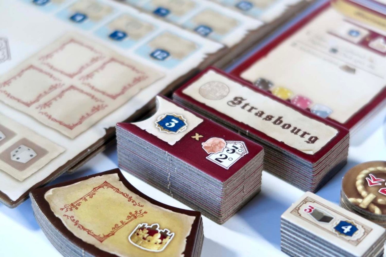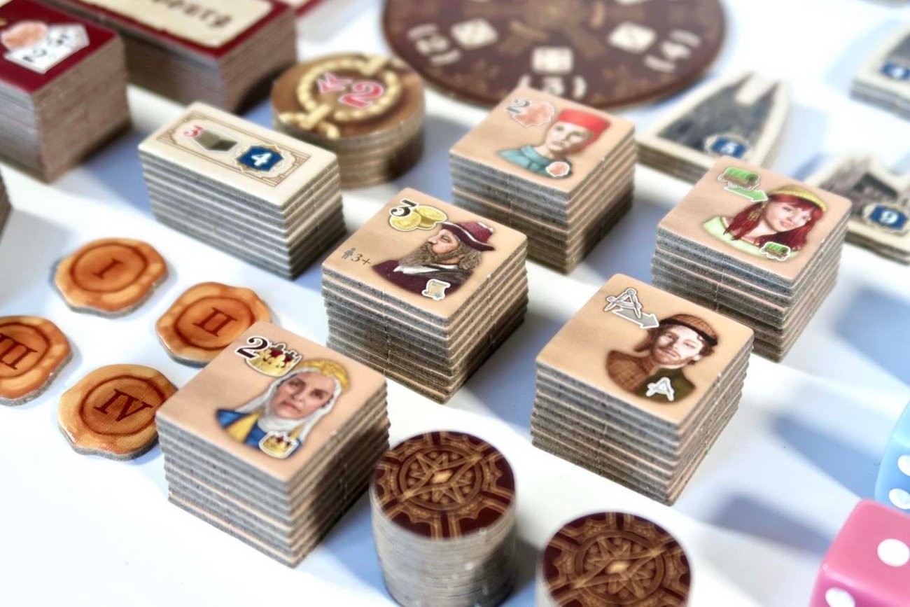 - Основні механіки: управління ресурсами, будівництво, дипломатія, кубики як мультифункціональні ресурси
