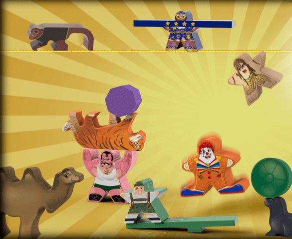 У цій незвичайній настільній грі 2-5 гравцям належить влаштувати по 3 циркових вистави, змагаючись за найбільшу кількість оплесків. Щоб отримати останні, потрібно складати з фігурок акробатів, тварин, запрошених зірок і реквізиту циркові піраміди, виконуючи завдання з карток. Причому робити це потрібно вправно і швидко! Адже на номер у вас буде 2 хвилини, а спеціальний додаток (який можна буде завантажити безкоштовно) засіче час і додасть музику для необхідного антуражу. Умови отримання переможних очок оплесків будуть змінюватися в залежності від раунду та інших факторів, тому потрібно бути напоготові. Але складати з ваших артистів хиткі, але хитрі конструкції вам дуже сподобається. «Крихітні акробати» як ніхто знають, що таке — балансувати під куполом цирку. А до (число) їх можна замовити в Хід Конем зі знижкою 20%!