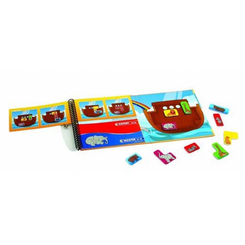 Не знаєте, як розважити дитину в дорозі? Зверніть увагу на розвивальні магнітні ігри від SmartGames. Тим більше що ця дивовижна колекція дорожніх ігор для дітей поповнилася новою головоломкою — «Ноїв Ковчег». У ній на нас чекає відповідальна і захопливе заняття: необхідно допомогти Ною врятувати різні види тварин, компактно розмістивши їх на ковчезі. Слони, бегемоти, навіть жирафи (всього 10 магнітних елементів із зображеннями звірів) повинні поміститися в невеликому трюмі, як то кажуть: в тісноті, та не в образі. Головне, не забути за межами корабля чиїсь лапи, шиї та хвости, потурбуватися, щоб ніхто не стояв на голові, та, звичайно ж, не розлучити сімейні пари — фішки з тваринами одного виду повинні стикатися. Самі елементи мають різну форму і розмір, та й трюм корабля не квадратний, тому юних зоологів чекає завдання по типу «тетрис», яке захоплює не на жарт. Адже на сторінках гри-книжки «Ноїв Ковчег» можна знайти 48 завдань різної складності та пройти шлях від новачка до майстра завантаження симпатичних звірів. Кожне завдання показує початкове розташування декількох тварин, чим вище рівень — тим більше вусатих пасажирів треба розмістити самостійно. Весело розвивайте логіку і просторове мислення, взявши з собою цілий «Ноїв Ковчег»!