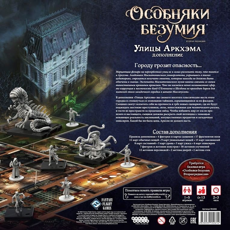 Здійснилося! Нарешті вийшла локалізація першого великого доповнення до прекрасного кооперативу «Особняки Безумства. Друга редакція». І доповнення «Особняки Безумства. Вулиці Аркгема (Особняки Безумия. Улицы Аркхэма)» дійсно велике!