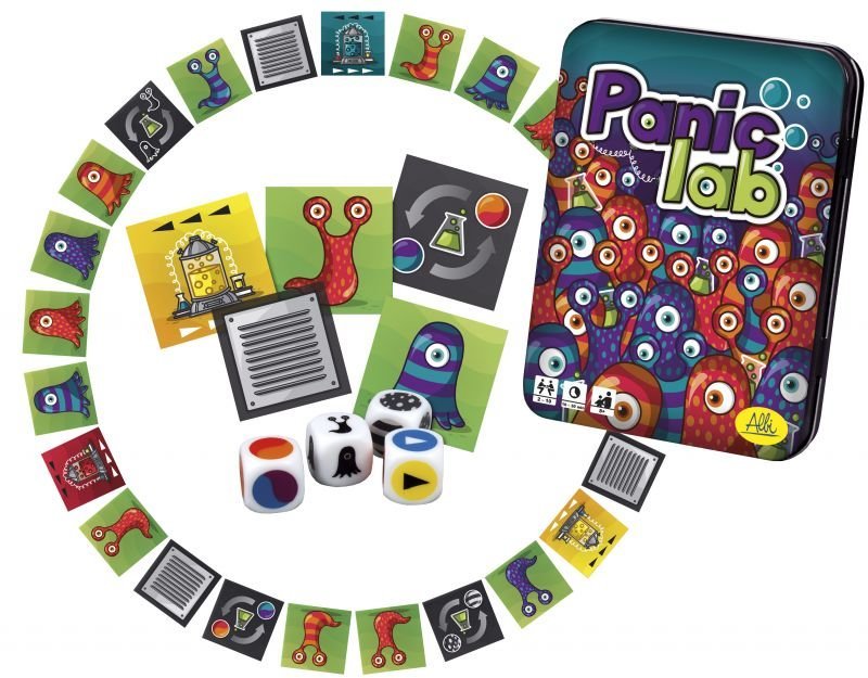 Кмітливим молодшим науковим співробітникам не складе великих труднощів їх зловити. Ось тільки у веселій грі на уважність і швидкість мислення «Паніка в лабораторії» шукати втікачів належить швидше суперників! До пори до часу симпатичні амеби ховаються на картках в компактній жерстяної коробці гри, але варто її відкрити - ці спритні бешкетники розбігаються світ за очі. Кидком 4 спеціальних кубиків гравці складають фотопортрет амеби: її колір, візерунок, кількість очей - а також обчислюють, де її бачили в останній раз і в якому напрямку вона поповзла. Далі гравці вдивляються в викладені колом картки, намагаючись знайти підходящу під опис втікачку. Хто перший знайде - отримує пластиковий переможний жетон, а набрав 5 очок - перемагає в партії і може не мити за собою пробірки.