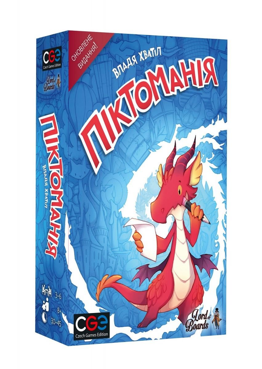 Обережно, в нашому інтернет-магазині і магазині настільних ігор на метро Оболонь поширилася «Піктоманія»! Вона швидко передається ігровим шляхом в групі від 3 до 6 осіб і викликає звикання до малювання. Відповідальність за дану образотворчу епідемію бере на себе видавництво «Lord of Boards і Влаада Хватіл, автор популярної гри для вечірки «Кодові імена» та багатьох інших цікавих ігор. Хід Конем тут також дуже причому. Але не хвилюйтеся, Піктоманія хоч і дуже прилиплива, але обіцяє лише позитивні емоції!
