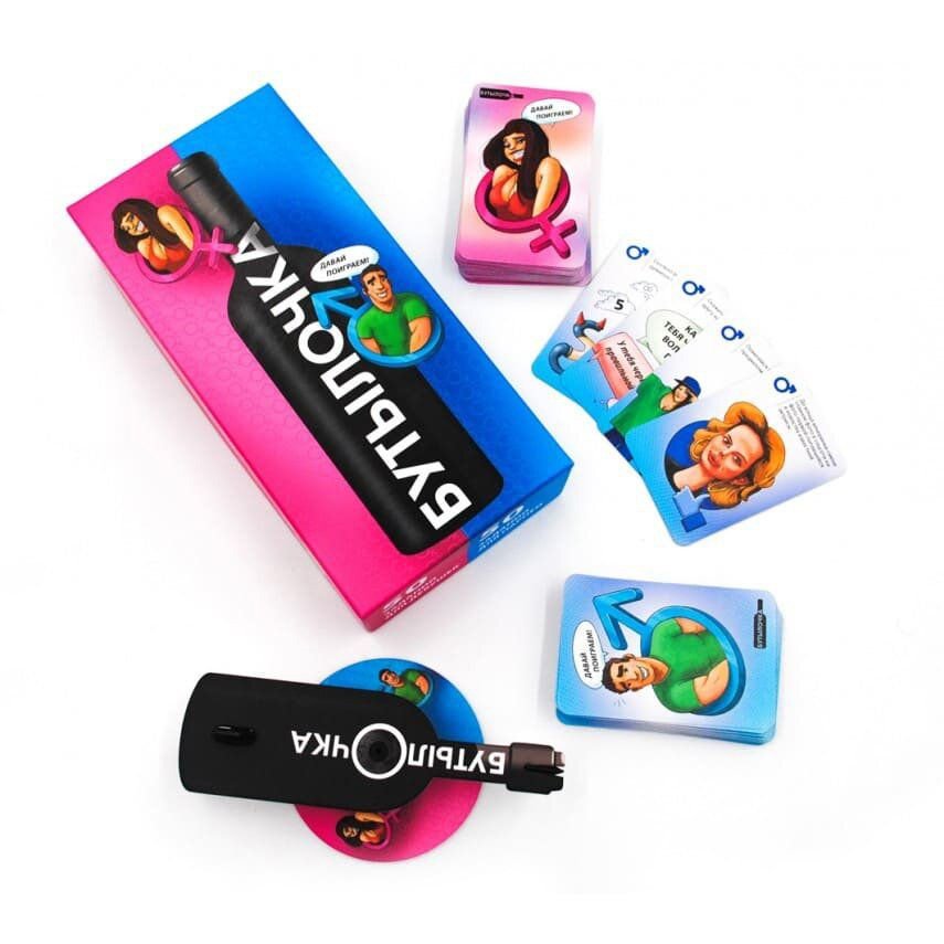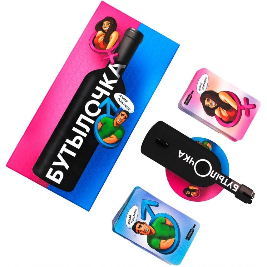 Визначити друзів на дотик за формою їх м'якого місця, зібрати з гравців по одному предмету одягу і надіти їх на себе, з'їсти банан, затиснутий між ніг сусіда... Атож, патігейм «Бутылочка (Пляшка)» перетворить будь-який нудний вечір на розкуту вечірку, яка запам'ятається надовго, а ще цю гру можна купити в подарунок, адже вона чудово оформлена. Причому саму пляшку шукати не треба — в коробці є фігурна стрілка на підставці, яку зручно крутити на столі, визначаючи виконавця чергового завдання. До речі, якщо ви не ризикнете виконувати фант, можете взяти один з 12 скіп-жетонів і пропустити хід, ось тільки той, хто спасує останній раз — програє. В інших випадках переможе дружба, а також — нестримні веселощі. Адже «Бутылочка (Пляшка)» ще нікого не залишила байдужим!
