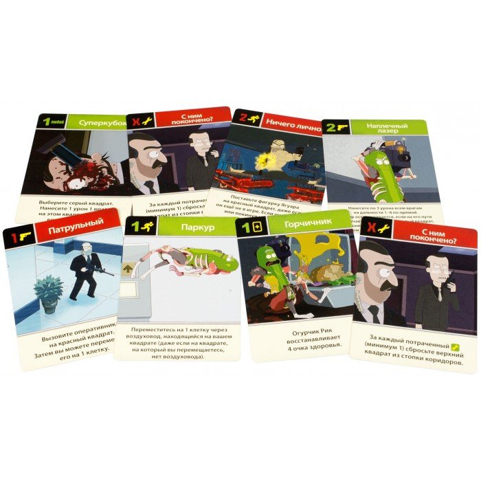Якщо у вас в руках опинився гігантський пластиковий огірок, то вам крупно (в прямому сенсі слова) пощастило. Так, його не можна використовувати для салату, але з ним можна здорово розважитися. Ми, якщо що, говоримо про настільній грі Рік і Морті: Огурчик Рік (Rick and Morty: Pickle Rick), а ви про що подумали? Шанувальникам серіалу «Рік і Морті» можна не пояснювати, чому люди, бачачи упаковку з цією грою в вигляді великого зеленого огірка на підставці, радісно кричать: «Морті, дивись! Я огірочок! Огірочок Рік ». А ось усім необізнаним магазин настільних ігор Хід Конем із задоволенням радить подивитися 3 епізод 3 сезону цього божевільного серіалу. Там весело розповідається про пригоди вченого Ріка Санчез, який, щоб не йти зі своєю дочкою чи в торговий центр, то чи до психотерапевта, перетворює себе у великій маринований огірок. Ціна цього вчинку виявляється висока - адже Ріка випадково змиває в каналізацію. Щоб протистояти агресивно налаштованим щурам, він робить собі екзоскелет (з того, що вдалося купити на аліекспресс, точніше - зібрати, пробираючись по трубах), але саме соковите рубилово починається, коли Рік потрапляє в туалет російської секретної бази. Ось тут вам і належить підключитися до замісу, адже без вас не розберуться! Причому в дуельному коридорному шутере «Рік і Морті: Огурчик Рік» один з гравців візьме на себе роль маринованого генія (у вигляді симпатичної високодеталізованими фігурки), а другий буде представляти російських оперативників і найманця Ягуара. У останніх - 34 озброєних охоронця і вони не можуть вбити огірок, тому агенти вербують небезпечного злочинця (у якого теж є грізна мініатюра), щоб покришити на олів'є Ріка, ну або хоча б не дати йому втекти. Завдання вченого - вижити і дістатися до злітної площадки на даху. Шлях геніального зеленого огірочка до порятунку лежить через коридори бази на складеному ігровому полі, тайли якого будуть відкриватися гравцям поступово, тому кожна партія проходить на новому плацдармі. Добір карт, атака, переміщення фігурок персонажів та інші можливості регламентуються кидком спеціальних кубиків, частина з яких можна перекинути. У обох сторін є різні колоди з картами дій (зі смішними ілюстраціями і фірмовим гумором), а також свої унікальні можливості. Рік, наприклад, як справжній слизький корнішон, може переміщатися не тільки по коридорах, а й через вентиляційні шахти, і володіє багатим арсеналом пасток і картами зброї. Шпигуни в свою чергу щосили стріляють і вміло використовують тактичні прийоми, щоб загнати Ріка в кут. Все це неподобство триває до виконання однієї зі сторін переможних умов і легко забирається всередину гігантського огірка до наступного замісу. До речі, якщо ви раптом не знайшли другого гравця, то в гру можна прекрасно зарубати самостійно, граючи в соло-режимі за Ріка. Настільна гра «Рік і Морті: Огурчик Рік» викликає дикий захват у шанувальників серіалу і всіх оригіналів, легко береться з собою і чудово виглядає на полиці. Повірте, припадає пилом їй там не доведеться - адже цей посміхаються зелений огірок всім своїм привабливим виглядом і захоплюючим змістом як би говорить: «Пограй зі мною! Буде здорово". І ти з ним кожен раз охоче погоджуєшся.