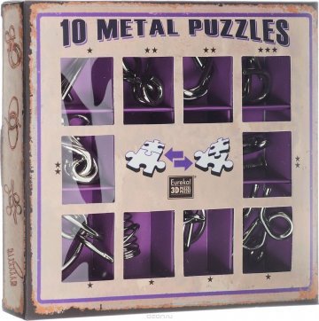 10 металлических пазлов трёх уровней сложности.