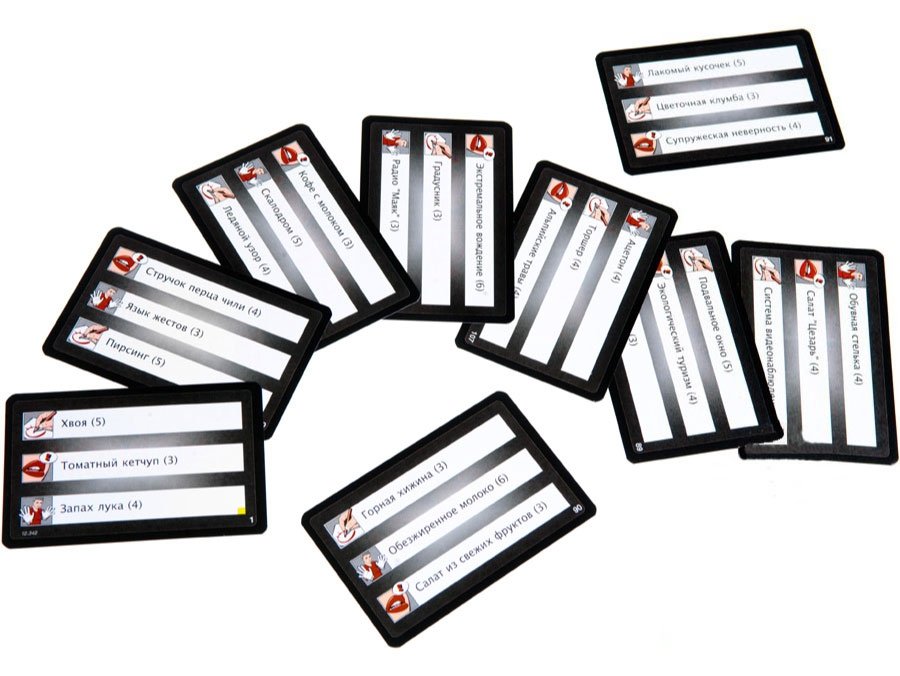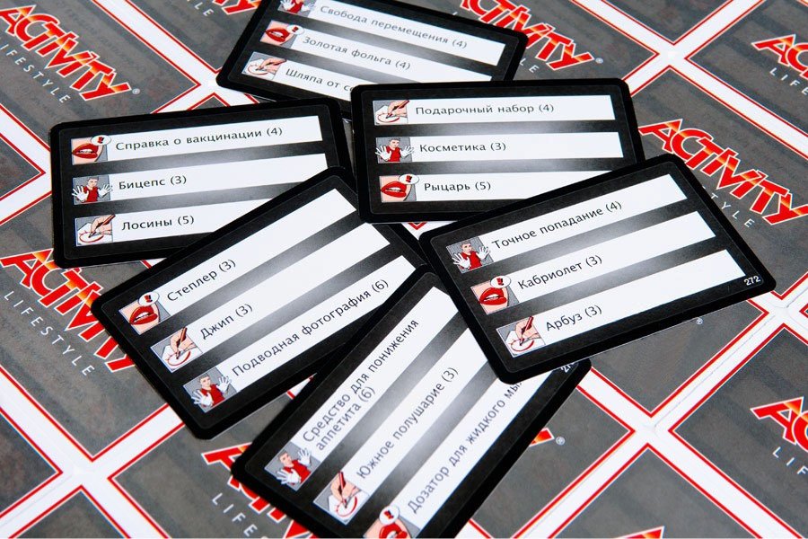Нужно объяснить своей команде за минуту слово или фразу на карточке, которые имеют разную ценность. Обозначение рядом со словом укажет способ: рассказать, не используя однокоренные слова, нарисовать, не изображая сам объект, или показать пантомимой. А если загаданное команда не отгадала, то рынок задает правила — право ответить переходит соперникам.