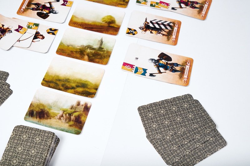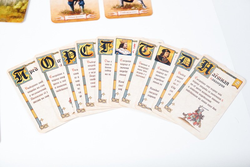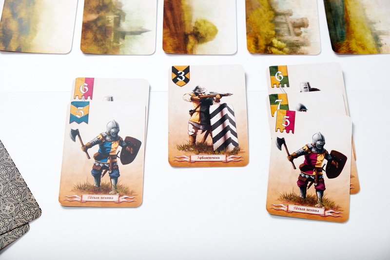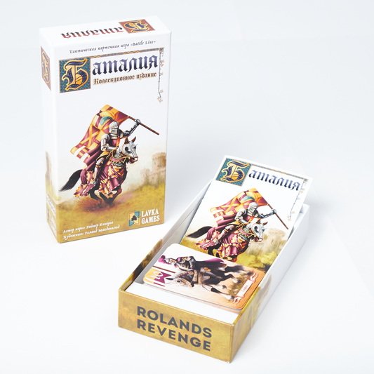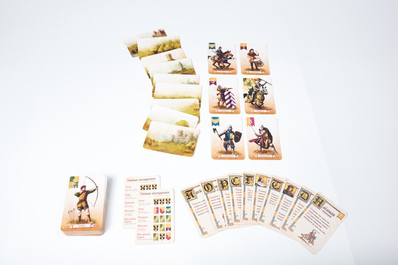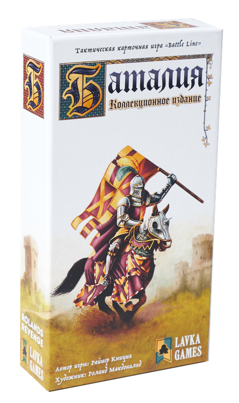 Настольная игра «Баталия» отправляет двух игроков в рыцарское средневековье, где им предстоит сразиться за живописные замки и поля. Последние, в количестве 9 штук, выкладываются в ряд между соперниками, а игроки получают по 7 карт отрядов. Отряды — это карты с изображениями арбалетчиков, знаменосцев, кавалеристов и других средневековых воинов номиналом от 1 до 10 шести разных мастей. Чтобы захватить карту территории, нужно выложить перед ней более сильную комбинацию карт, чем у соперника.