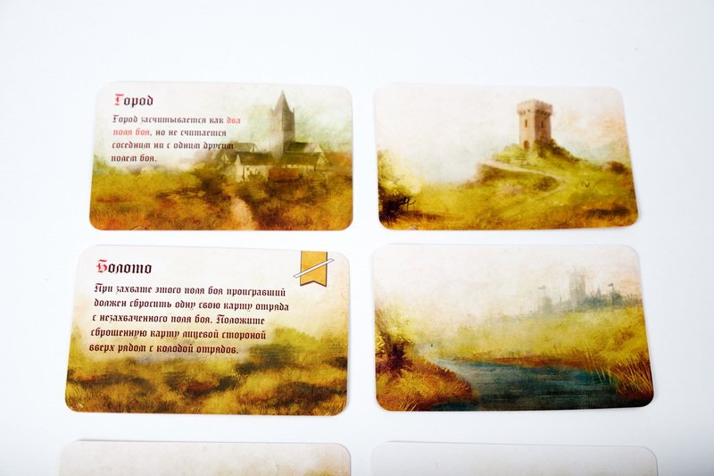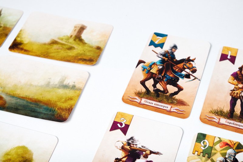 Кстати, в настольную игру «Баталия» можно сыграть и по более сложным правилам (например, учитывая особенности территорий), но в любом случае эта карточная дуэль заставит вас пораскинуть мозгами. Ее также можно купить в дорогу и играть даже с новичком в настольных играх. Тактическая игра «Баталия» не занимает много места, стоит недорого, но радует динамичными и интересными партиями, даже если вас всего двое на поле боя!