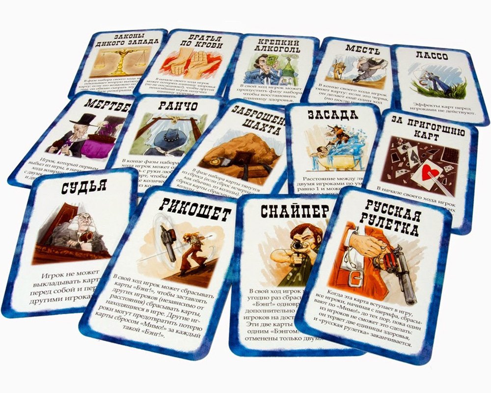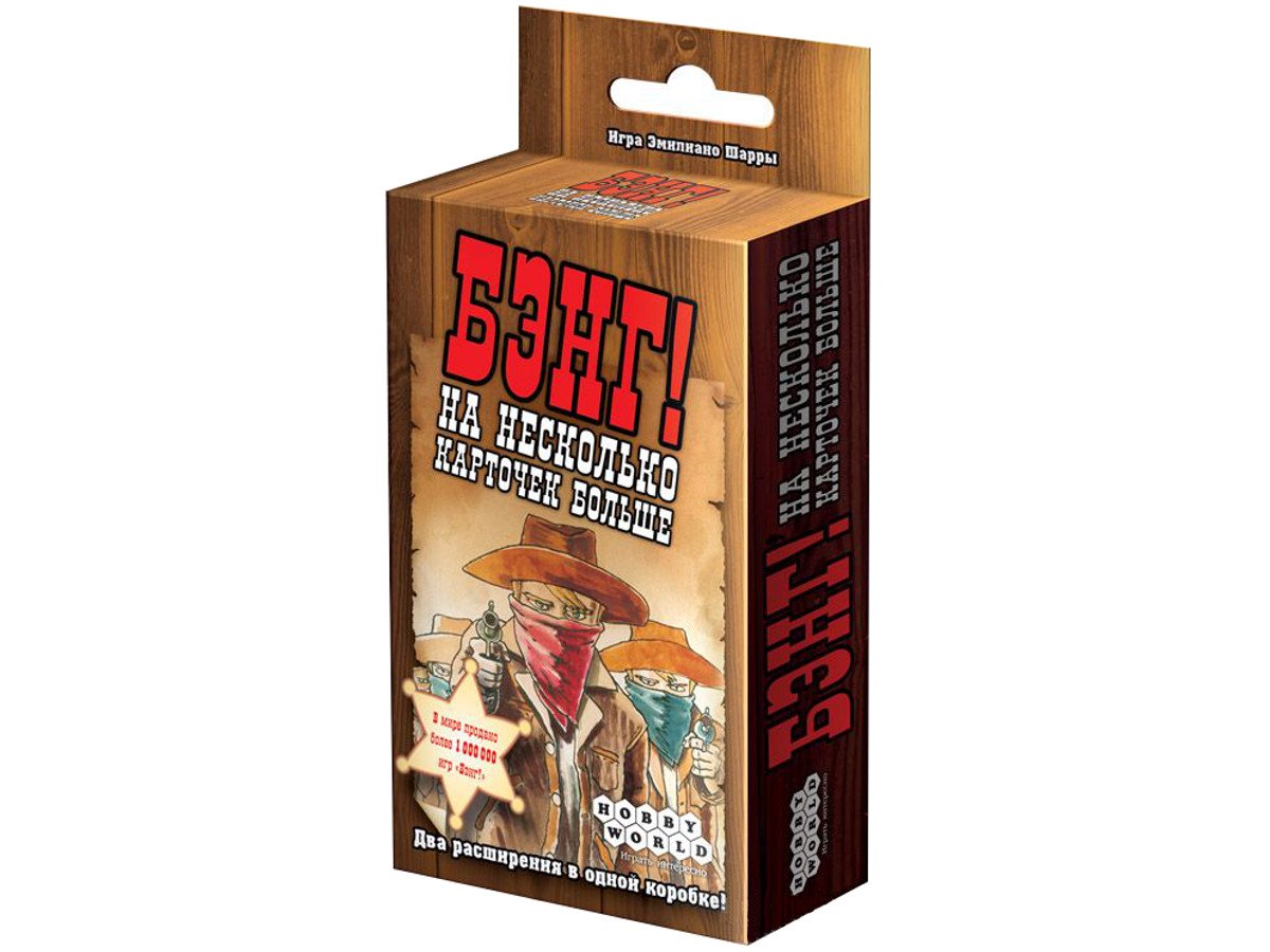 Если, а вернее, когда вы откроете дополнение «Бэнг! На несколько карточек больше», привычной жизни на Диком Западе придет конец. Больше не будет спокойных перестрелок, неторопливого уничтожения соперников и размеренной игры. Ведь это дополнение к базовому набору «Бэнг!» содержит целых 2 расширения, которые не просто разнообразят ваш любимый карточный вестерн, но и сделают жизнь бесшабашных ковбоев вдвое короче, а значит игру – вдвое динамичнее и интереснее.