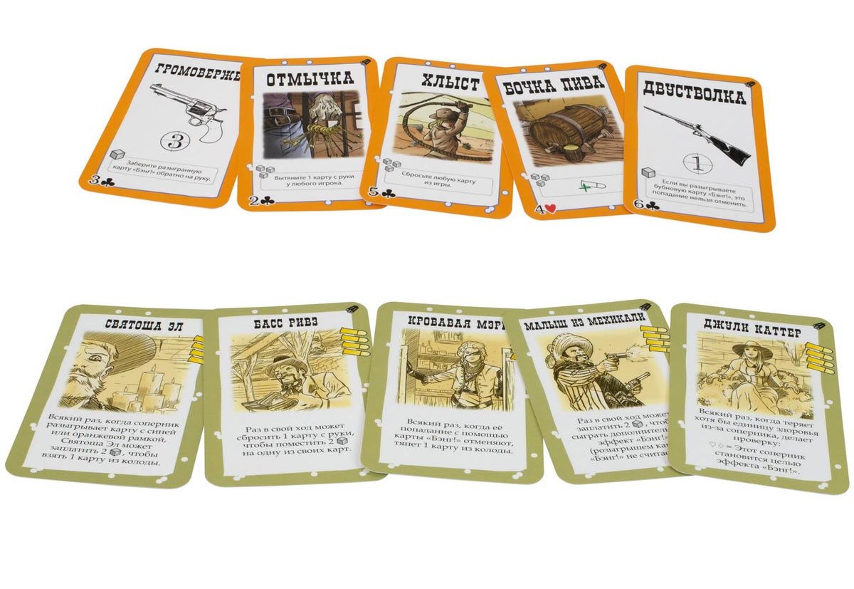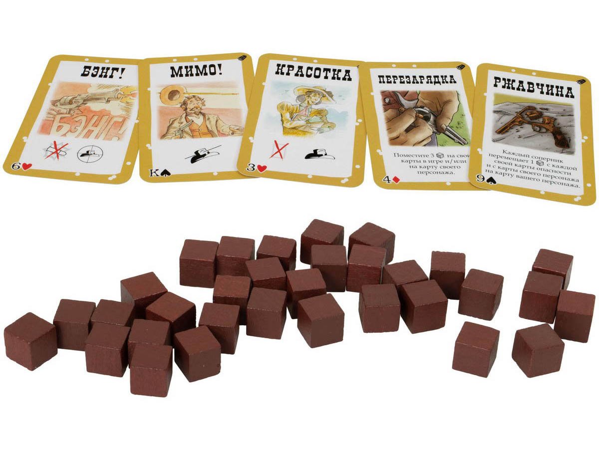 Оно добавит в вашу любимую игру 8 свежих (ещё не подстреленных) персонажей, целых 28 дополнительных карт (опасностей и невиданного ранее оружия), а также кубики нового ресурса. Да, с дополнением «Бэнг! Вооружен и Опасен» в игре появятся заряды, которые выкладываются на новые карты с оранжевой рамкой или персонажей. Эти кубики можно будет тратить, чтобы активировать особые эффекты или улучшать карты. Конечно, у всякого бонуса будет своя цена, поэтому используйте ресурсы с умом. И если с этим дополнением за вашу голову не назначат награду, то попробуйте смешать «Бэнг! Вооружен и Опасен» с другими выпусками серии, чтобы уж точно оказаться в списке самых разыскиваемых преступников. Или легендарных шерифов. Тут уж как карта ляжет.