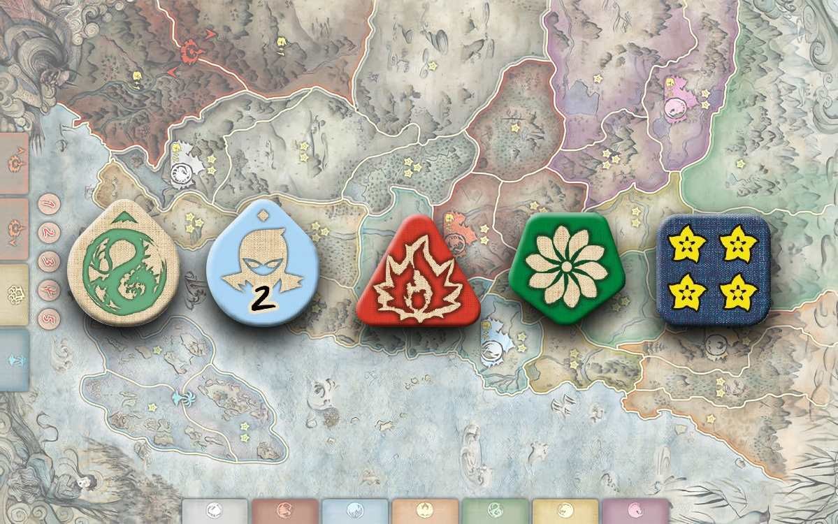 Игровое поле в «Битве за Рокуган» выполнено в стиле «100 видов горы Фудзи» Хокусая и изображает материк с архипелагом, поделенные на регионы и провинции.