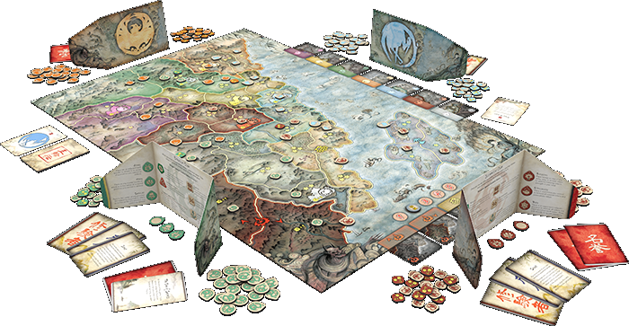 И мы неспроста заговорили хокку, ведь в этой асимметричной стратегии нам предстоит стать полководцами японских кланов и сразиться за земли Изумрудной Империи. Все события настольной игры «Битва за Рокуган» происходят на территории вымышленного государства из вселенной «Легенды пяти колец» (Legend of the Five Rings или L5R). Игроки, окруженные восточной эстетикой всех элементов игры, станут даймё — лидерами 5-ти уникальных враждующих кланов. У каждого полководца будет ширма с подсказками и описанием особенностей своих воинов, за которой он сможет размещать тайные карты целей, разные жетоны битвы и планировать свои действия.