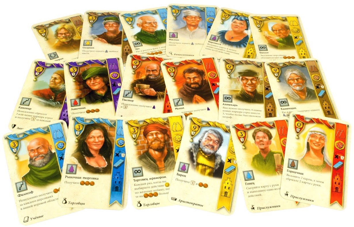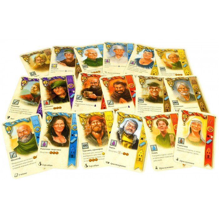 Раскладывайте компоненты и приступайте к игре, состоящей из 4-х фаз. Сперва, вы добираете случайные карты персонажей, которые имеют свой цвет, уникальные способности и позднее могут быть использованы для своих целей. Далее, бросаете 5 разноцветных кубиков, определяя грозящие вам бедствия и напасти (куда же в Средневековье без чумы, потопа, интриг и прочих неожиданностей), а также стоимость репутации (ее можно купить, а как вы думали). В основной фазе вы разыгрываете 4 карты, учитывая их цвет и совершая какие-либо из возможных 6 действий. Здесь и разгуляется ваш гений стратегии, ведь карты с персонажами можно использовать и другой стороной с изображенным зданием, и для сбрасывания угроз, и для застройки каналов, но часто с дополнительным финансированием - определенно, есть над чем подумать, учитывая все возможные пути развития событий. После подсчета лидерства и получения соответствующего маркера, если вы в чем-то оказались лучше других, наступает следующий раунд, и так до тех пор, пока не закончится колода и придет время узнать, кто же стал самым уважаемым и влиятельным купцом в Брюгге. Возможно, им окажетесь именно вы?
