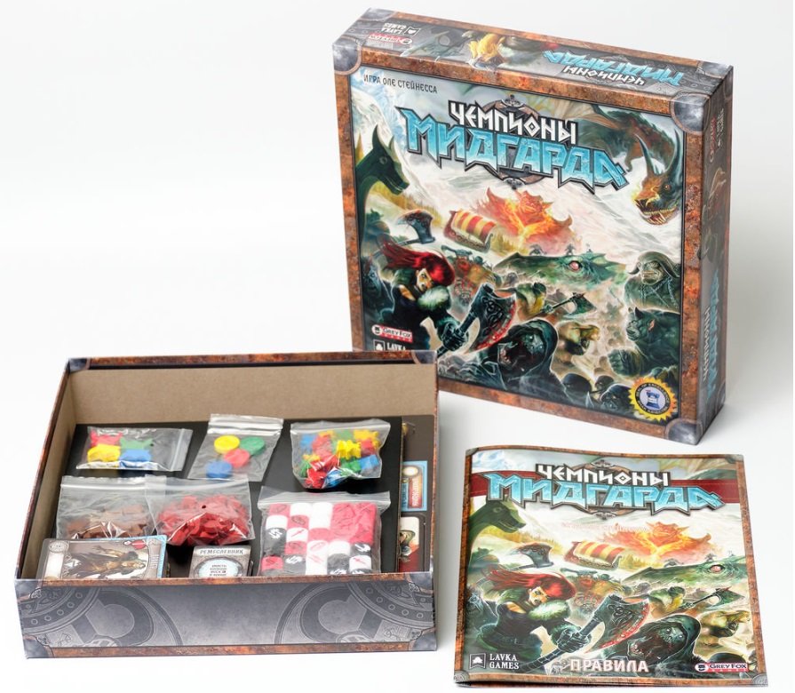 Борьба с троллями, стражами могильных курганов и другими чудищами на картах в игре потребует от вас сытых воинов, прочных драккаров и хорошей погоды. Поэтому игрокам в этой экономической евро стратегии с элементами америтреша предстоит размещать на разных локациях поля маленькие рогатые фигурки викингов. Затем — собирать ресурсы, строить корабли, готовить оружие и запасаться провиантом для походов против монстров (наслаждаясь при этом обилием деревянных и других красивых компонентов игры). Вам также понадобятся руны (куда же без них в те времена), советы мудреца (чтобы узнать погоду перед отплытием) и милость богов (которую можно купить). Всё это можно найти в Мидгарде и окрестностях, но часто в локации будет место только для одного рабочего, а значит, викингов в игре «Чемпионы Мидгарда» ждет суровая (как Северное море) конкуренция.